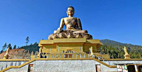 After breakfast visit Kuensel Phodrang (Buddha Statue) a place for refreshing with a huge statue of Buddha on the top of the Kuensel Phodrang, National Memorial Chorten (Monument) & Folk Heritage Museum. Afternoon visit Sangaygang View Point, Changangkha Monastery, Takin Preserve Centre, the national animal of Bhutan can be seen here. In the evening visit Tashichho Dzong (Fortress of the Glorious Religion). Overnight stay at Thimphu.