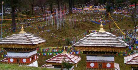 (Distance: 77 kms. / Driving Time: 3 hrs. / Altitude of Punakha: 1310 mts.) After breakfast drive to Punakha (4298 ft.)/ Wangdue, On the way Stop at Dochu-La-Pass (3150 mts.). to view the higher Himalayas. Arrival at Punakha check in at hotel. After noon visit Punakha Dzong - built in 1637 by Zhabdrung Ngawang Namgyal. For many years until the time of the second king, it served as the seat of the Government. The Dzong was named Druk Pungthang Dechen Phodrang (Palace of Great Happiness). Punakha is still the winter residence of Je-Khenpo and King Jigme Dorji Wangchuck convened the first National Assembly here in 1952. After that take a short and easy hike to visit the Chhimi Lhakhang - The Temple, also known as "The Temple of Fertility" was built by Lama Drukpa Kuenley, "The Devine Mad Man". Evening free for leisure. Overnight stay at Punakha / Wangdue.