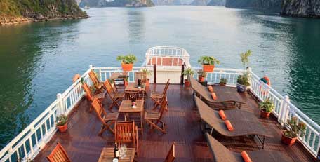 Have breakfast at hotel and check out. From Hanoi, at 8AM, head East for more than 3 hours by shuttle bus to Halong Bay, the pride of the Gulf of Tonkin, a Natural World Heritage as designated by UNESCO in 1994. The road will pass by the Red River delta with green paddyfields and rural villages, where hard-work farmers are busy with their farming jobs, ploughing buffaloes or planting seedling. Upon arrival in Halong, we'll take a big boat to cruise the Bay to discover the magnificent beauty of this "Descending-dragon" bay, created by thousands odd-shaped limestone rocks and karst grottoes. After a lunch of fresh seafood on board, we can visit the Surprising Grotto, stop for swimming or kayaking, passing floating villages and approach islets to enjoy their beauty in close distance. Back to the boat for dinner late afternoon. Evening attend activities on the boat or relax at your own leisure. Overnight on the boat near Titov Beach.