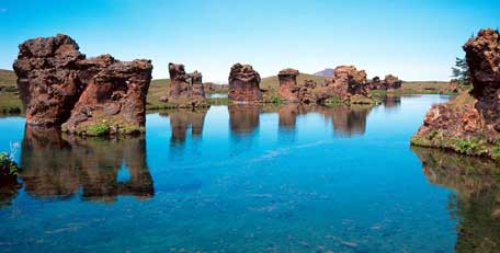 Drive to Seyðisfjörður, one of the most enchanting villages in Iceland with its well-preserved wooden houses, steep mountains and picture-perfect fjord scenery. Next, head to the Lake Mývatn area, a hotbed of volcanic landscapes such as the Námaskarð Pass, Skútustaðagígar pseudo-craters, Dimmuborgir lava formations and Krafla, one of Iceland's most fascinating volcanoes. Later, take a dip in the soothing milky blue geothermal waters of the Mývatn Nature Baths, the perfect way to relax after a full day of sightseeing. Spend the night in the Lake Mývatn area.