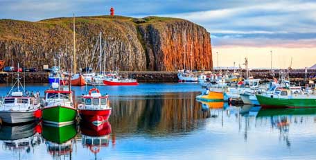 Today you will have a chance to enjoy Skaftafell, part of the immense Vatnajökull National Park and a place of great natural beauty with many interesting hiking trails, including a short walk to the beautiful Svartifoss waterfall. This area is also full of opportunities for more adventurous pursuits, such as a guided glacier walk or ice-climbing excursion. Then, head to the glorious Jökulsárlón glacier lagoon, where you can join a boat ride among the maze of floating icebergs (optional). Spend the night in the Höfn area.
