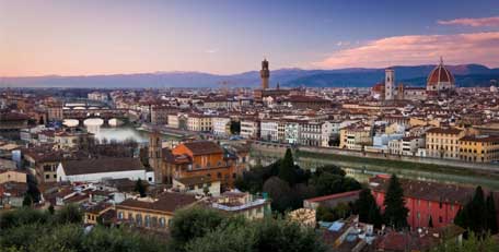 TODAY'S HIGLIGHTS: Tour with a local expert from Florence. View from Piazzale Michelangelo. We will leave Rome, heading north. This route is graced with beautiful landscapes. Upon arrival in FLORENCE, we head straight to Piazzale Michelangelo, an impressive site in the city and then we provide a panoramic tour with a local expert and walk through the historic centre. In the afternoon, we recommend a visit to its famous markets. Florence is one of the most recommendable Italian cities for shopping or for visiting any of its important museums.