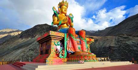 After breakfast, drive to Nubra Valley (Known as the Valley of Flowers and the warmest region in Ladakh) via Khardungla pass. This road is one of the highest motorable road in the world. After spending some time at Khardungla, proceed to Nubra. Visit Sand Dunes in the evening and enjoy the double humped camel ride (on your own). Overnight stay in Nubra