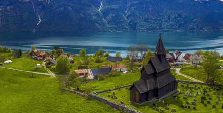 TODAY'S HIGHLIGHTS: Spectacular scenery of mountains and fjords. Cruise. Landscapes are still fantastic on this day: images of Norway's interior region - fjords, glaciers, lakes and forests. We will travel to SOGNEFJORD, Norway's largest fjord. Prior to arrival, we will stop at the beautiful TVINDEFOSSEN waterfall. We will go on a magnificent cruise between the cities of Gudvangen and Flam; fantastic landscapes during this two-hour voyage. We will continue our journey crossing magnificent snow-covered landscapes. We will go under Lærdal Tunnel, one of the longest in the world. Visit to BORGUND's 12th century wooden church which is considered Norway's best preserved medieval church (entrance included). Arrival in OSLO. Free time. Check out its port, main streets, and the artworks at Frognerparken.
