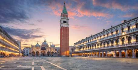 After breakfast, make your way to St. Mark's Square to meet your tour guide. Enjoy a relaxing 1.5 hour public guided walk covering the most iconic Venice landmarks. The tour starts at St Mark's Square and passes the Ducal Palace as well as the Bell Tower. Listen to the guide's anecdotes as you pass through the narrow streets, squares and bridges of Venice. Return to St Mark's Square via the Mercerie, the main street for shopping. In the afternoon, take an enchanting gondola tour and glide through centuries of history, allowing yourself to be captivated by the glamour and elegance of the Venetian Palazzi. The perfect way to appreciate the beauty, charm and colour of this unique city built on water, you will be enthralled by what surrounds you. Overnight Venice.